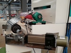 Before we start the production, we need to cut the long paper core to suitable width with the paper core cutter, then we use the paper core loader to make the small paper tubes attached on the slitting shaft.